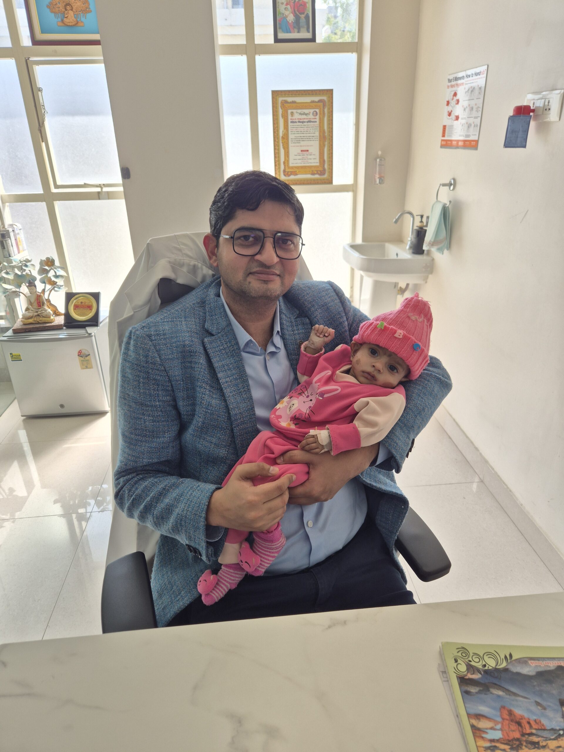 जन्म के तुरंत बाद शिशु अवंतिका में दिल से जुड़ी गंभीर जन्मजात बीमारी का पता चला था, जिसके कारण उसे सांस लेने में तकलीफ़ और शरीर में ऑक्सीजन की कमी की समस्या हो रही थी। रेडिएंट चिल्ड्रन हॉस्पिटल के डॉक्टरों की टीम ने समय रहते जांच कर शिशु की स्थिति को गंभीर बताया और तुरंत सर्जरी की सलाह दी।