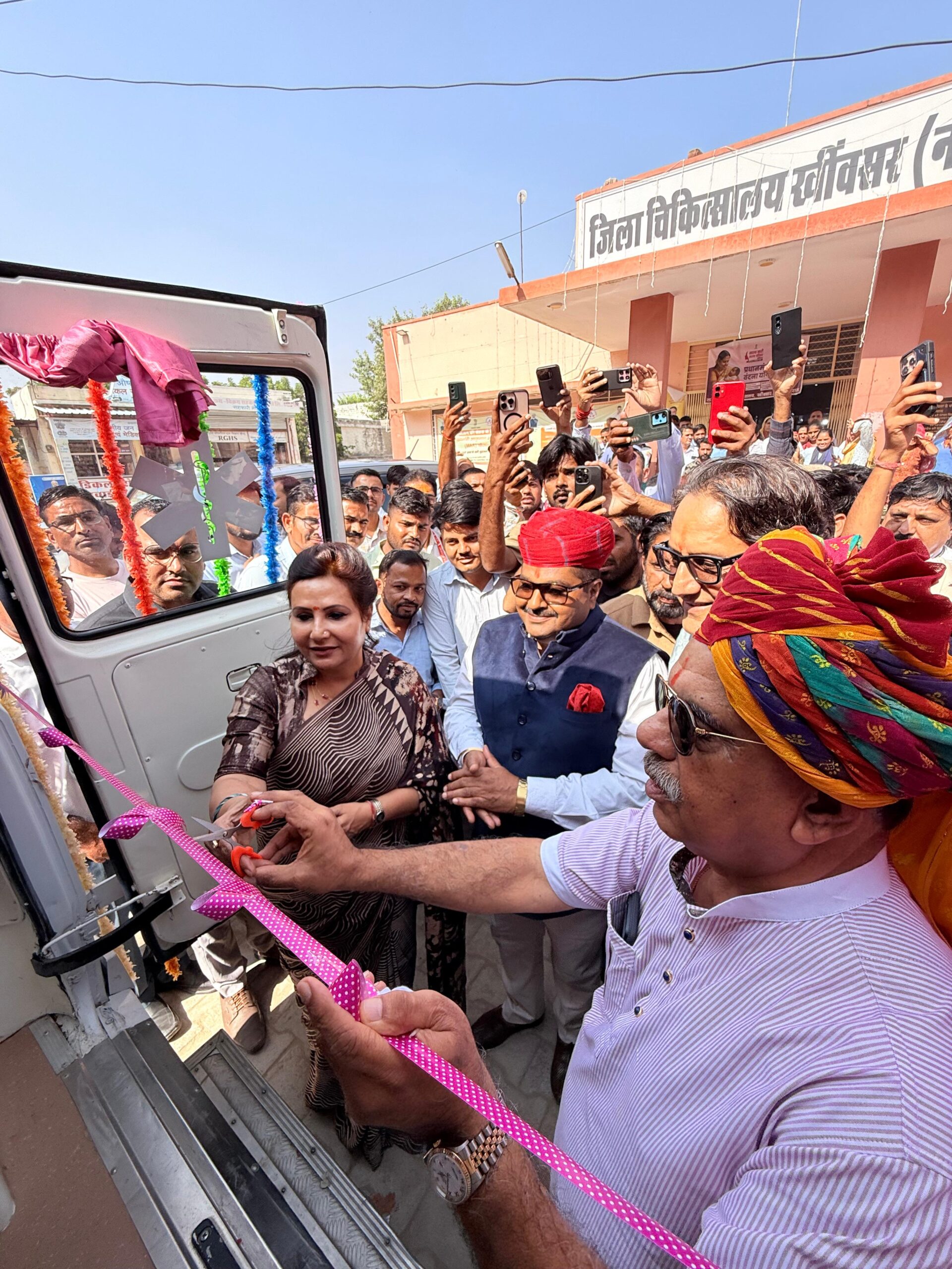 रविवार को चिकित्सा एवं स्वास्थ्य मंत्री गजेन्द्रसिंह खींवसर ने हरी झंडी दिखाकर इस मोबाइल वैन को रवाना किया। इस अवसर पर चिकित्सा मंत्री ने खींवसर के राजकीय जिला अस्पताल में डायलिसिस सेंटर का विधिवत उद्घाटन भी किया। डायलिसिस सेंटर के प्रारंभ होने से अब इस क्षेत्र के किडनी रोगियों को बड़ी राहत मिलेगी। यहां रोगियों के उपचार के लिए दो डायलिसिस मशीनों की सुविधा उपलब्ध करवाई गई है। राज्य सरकार का उद्देश्य है कि ग्रामीण अंचलों में रहने वाले प्रत्येक व्यक्ति तक आधुनिक स्वास्थ्य सेवाएं पहुंचें। पहले लोगों को बड़ी एवं गंभीर बीमारियों की जांच और उपचार के लिए दूर-दराज के शहरों में जाना पड़ता था, लेकिन अब सरकार ऐसी सुविधाएं गांव-ढाणी तक पहुंचाने के लिए निरंतर कार्य कर रही है। उन्होंने कहा कि कैंसर जैसी गंभीर बीमारियों का समय पर पता लगना ही उपचार का पहला कदम है और इस दिशा में यह मोबाइल वैन ग्रामीण स्वास्थ्य क्रांति का माध्यम बनेगी। कार्यक्रम के दौरान मुख्य चिकित्सा एवं स्वास्थ्य अधिकारी डॉ. जुगल किशोर सैनी तथा राजकीय अस्पताल, खींवसर के प्रमुख चिकित्सा अधिकारी डॉ. रामजीत टाक मौजूद रहे।