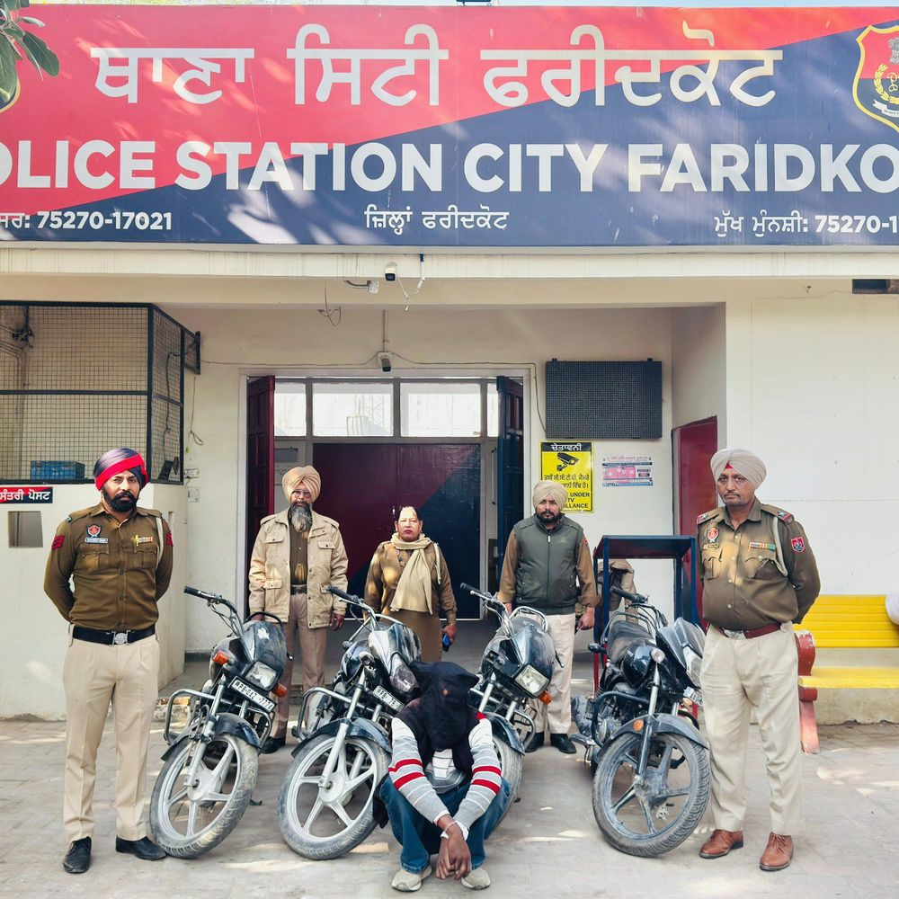 फरीदकोट मेडिकल कॉलेज में वाहन चोर गिरफ्तार, 4 बाइक बरामद