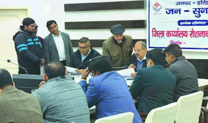 बैठक में अपर जिलाधिकारी ( वित्त एवं राजस्व) दीपेंद्र सिंह नेगी, जिला विकास अधिकारी वेद प्रकाश, मुख्य शिक्षा अधिकारी आशुतोष भण्डारी, जिला अर्थ संख्या आधिकारी नलिनी ध्यानी, परियोजना निर्देशक उरेडा वाई एस बिष्ट,समाज कल्याण अधिकारी अविनाश भदौरिया, लोनिवि अधिशासी अभियंता दीपक कुमार, जिला आपदा प्रबंधन अधिकारी मीरा रावत सहित जिला स्तरीय अधिकारी व विभिन्न क्षेत्रों से आए फरियादी मौजूद रहे।