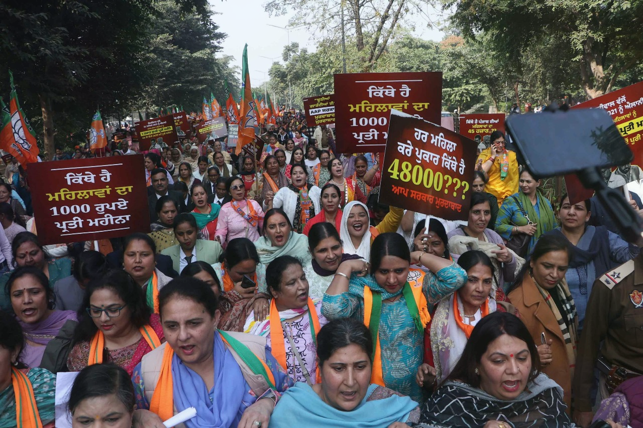 भाजपा महिला मोर्चा की प्रदेश अध्यक्ष जय इंदर कौर के नेतृत्व में महिलाओं ने 45,000 की बकाया राशि के वादे को लेकर शनिवार को चंडीगढ़ में प्रदर्शन किया। कौर ने महिलाओं को संबोधित करते हुए कहा कि 22 नवंबर 2021 को मोगा की एक रैली के दौरान आम आदमी पार्टी के नेता अरविंद केजरीवाल ने पंजाब की हर महिला को मासिक 1,000 रुपये देने की तीसरी गारंटी की घोषणा की थी। आज 45 महीने बाद महिलाओं को एक भी रुपया नहीं मिला है। हर महिला का सरकार की तरफ से 45,000 बकाया है।